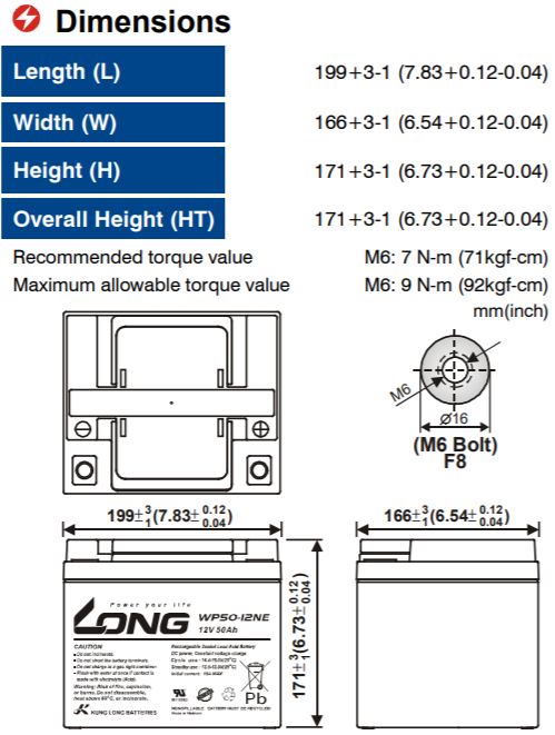 | WP50-12E, WP50-12NE | 12V-50Ah (20HR) | |||